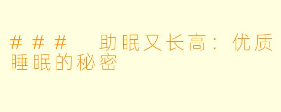 总之,助眠与长高之间关系密切,保持良好的作息、营养均衡,以及心理健康,才能让青少年在生长的道路上走得更稳、更高。