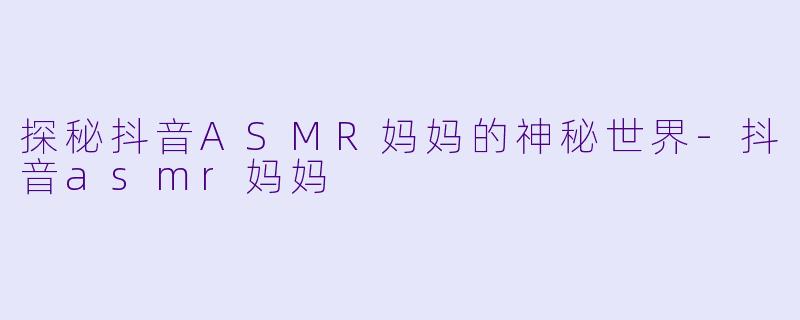 近年来,抖音ASMR妈妈在社交媒体上越来越受到关注和追捧。她们以温柔细腻的声音和动作,带给观众深度放松和愉悦的体验,成为许多人的心灵抚慰和精神寄托。这些妈妈们通过各种方式展现自己的才华和独特魅力,吸引了无数粉丝的关注和支持。