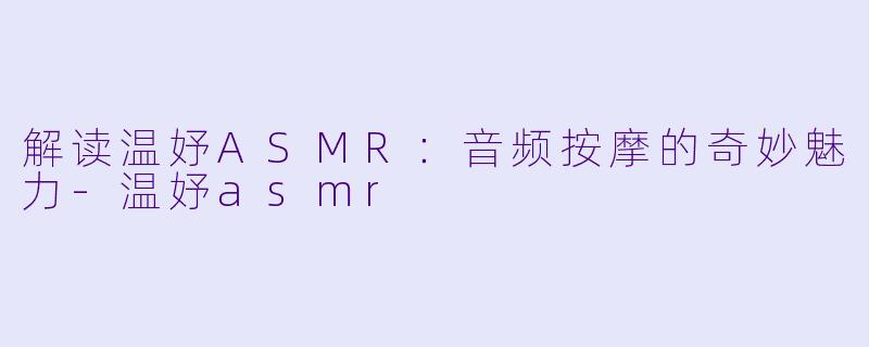 近年来,ASMR(Autonomous Sensory Meridian Response)音频按摩成为了一种备受欢迎的放松方式。在这个潮流中,有一位名为温妤的ASMR创作者备受瞩目。她的视频中,温妤用各种声音和手势,带领观众进入一片宁静的世界,让人在疲惫的生活中找到一丝舒缓和放松。