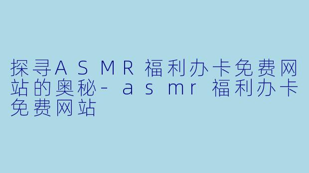 近年来,ASMR(自发性知觉经络反应)逐渐成为一种受欢迎的放松方式,吸引了众多网友的关注。随着ASMR视频的盛行,相关的福利办卡网站也应运而生,为热爱ASMR的朋友们提供了一个交流与分享的平台。