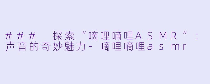在当今快节奏的生活中,许多人开始寻找能够舒缓压力、带来放松的方式。ASMR(自发性知觉经络反应)因此受到越来越多人的欢迎。而“嘀哩嘀哩ASMR”作为一种独特的声音体验,正逐渐进入大家的视野。