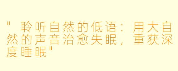 "聆听自然的低语:用大自然的声音治愈失眠,重获深度睡眠"