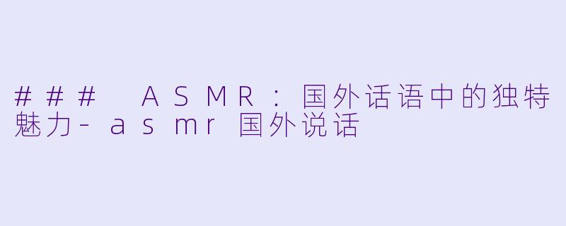 ASMR,即自主感官经络反应(Autonomous Sensory Meridian Response),近年来在国外广受关注。这种现象通常指的是人们在听到特定声音或观看某些场景时,产生的一种轻松愉悦的感觉,常伴随有愉悦的刺痛感。ASMR视频通常包含轻声细语、耳语、敲击声等,旨在通过温柔的声音刺激听者的感官。