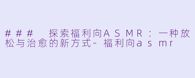 ### 探索福利向ASMR:一种放松与治愈的新方式