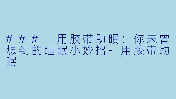 ### 用胶带助眠:你未曾想到的睡眠小妙招