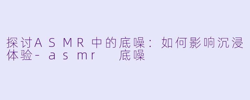 总之,底噪在ASMR中扮演着重要角色,它既可以增添深度和真实感,也可能成为干扰因素。对底噪的理解与运用,将帮助创作者更好地传达ASMR的魅力,提升观众的听觉体验。